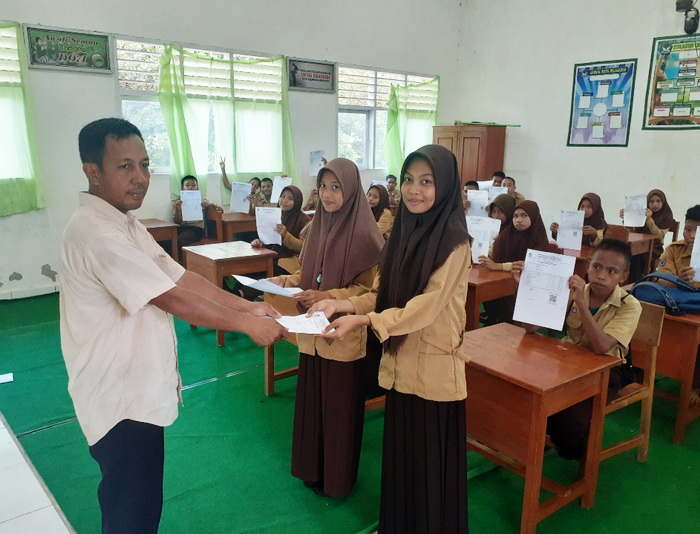 Sabtu, 10 Juni 2023, sebanyak 54 peserta didik SMPN 2 Wawonii Utara menerima Surat Keterangan Hasil Ujian Penilaian Akhir Tahun (PAT) dan Sumatif Akhir Tahun (SAT) T.P. 2022/2023 Berbasis IT. SKH-PAT/SAT ini dicetak langsung oleh panitia pelaksana dari server pelaksanaan Ujian SMPN 2 Wawonii Utara. SKH-PAT/SAT berisi hasil yang diperoleh peserta didik selama mengikuti PAT/SAT mulai tanggal 05 – 09 Juni 2023 yang terdiri atas 10 mata pelajaran yaitu PAIBP, PPKn, Bahasa Indonesia, Matematika, Bahasa Inggris, IPA terpadu, IPS Terpadu, Seni Budaya/Prakarya, PJOK dan Informatika. SKH-PAT/SAT diserahkan kepada peserta didik untuk ditanda tangani oleh orang tua yang kemudian dikembalikan ke sekolah pada hari Senin, 12 Juni 2023. Hal ini sebagai alat kontrol orang tua terhadap pencapaian hasil belajar peserta didik. Dengan mengetahui hasil PAT, orang tua diharapkan dapat memberikan perhatian yang lebih dan memfasilitasi kegiatan belajar peserta didik dirumah. (atm)